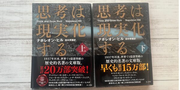 まさにそんなことを考えて、このブログ記事を書いている途中で保存した朝、届いたばかりの『思考は現実化する』 著ナポレオン・ヒル という本を読み始めました。